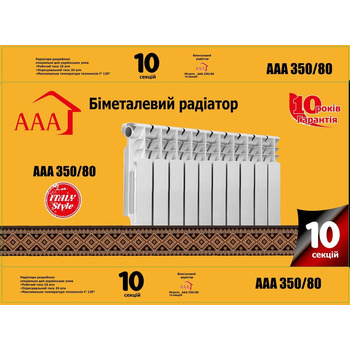 - Біметалевий радіатор на 10 секцій AAA 350/80