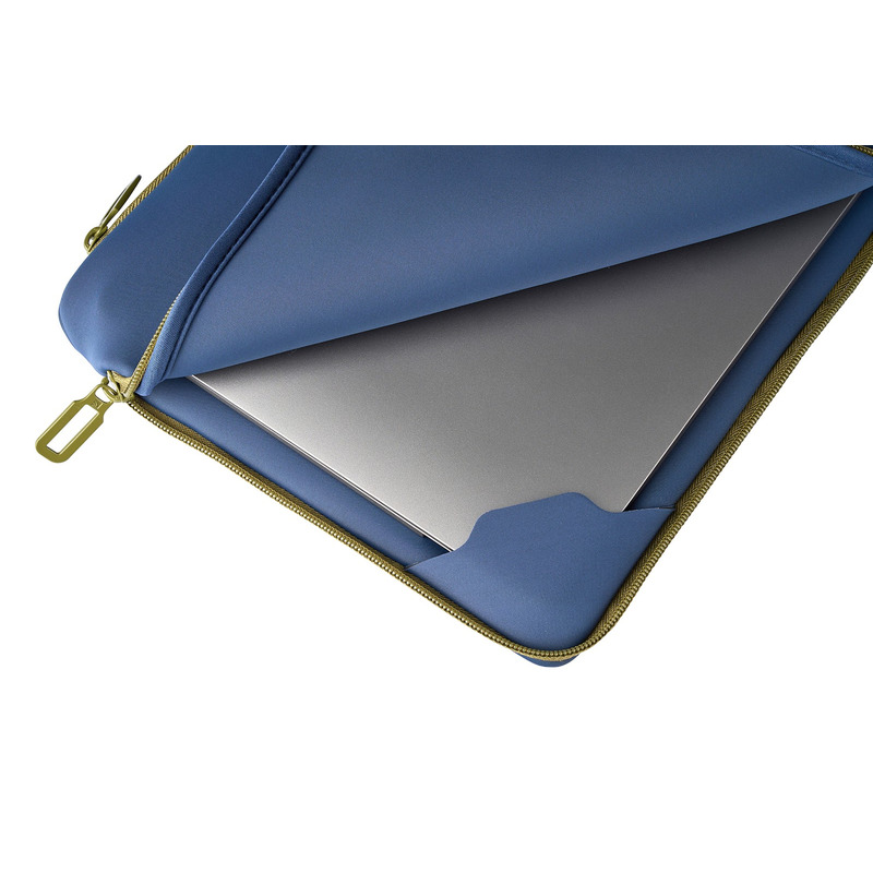 - Неопрен 4 мм: Товстий, м’який шар матеріалу згладжує удари та мінімізує ризик подряпин. Ваш ноутбук буде у безпеці навіть під час активного використання.