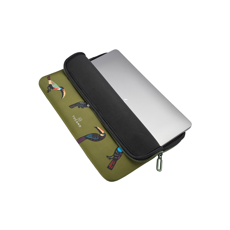Оберіть зелений чохол Tucano Tucani – і кожен погляд на ваш ноутбук буде насолодою! Яскравий принт із туканом одразу піднімає настрій, а плаский силует забезпечує компактність. Витончений зовнішній вигляд дозволить сміливо носити пристрій навіть на важливих ділових зустрічах чи улюблених коворкінгах.