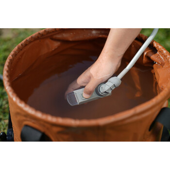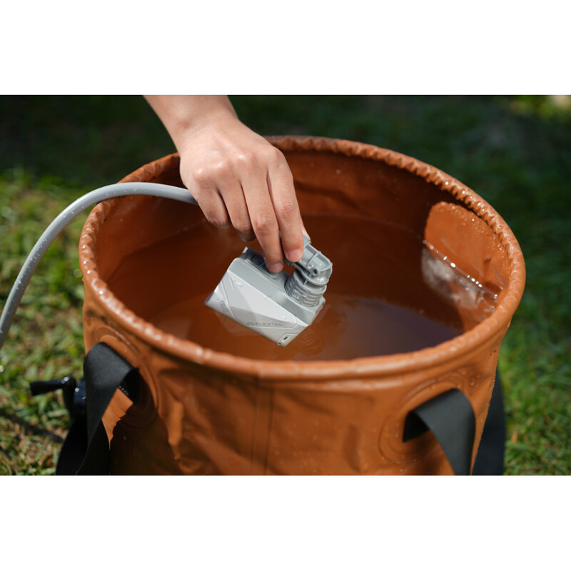 - Сучасна система фільтрації — очищує воду від піску та дрібного сміття, аби жодна зміна погоди не зіпсувала ваш гігієнічний комфорт. Це означає: ви подорожуєте з будь-яким пластиковим баком чи відром — і зразу ж отримуєте повноцінний душ звідки завгодно.