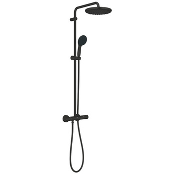 Шукаєте ідеальне поєднання стилю, надійності та інновацій у вашій ванній кімнаті? Зустрічайте Grohe Vitalio Start System 250 Cube — душову систему з сучасним дизайном і продуманими функціями для щоденного комфорту. Перше, що зачаровує — це круглий верхній душ діаметром 250 мм у розкішному чорному виконанні. Не просто гарно виглядає, а й дарує справжнє відчуття тропічної зливи!