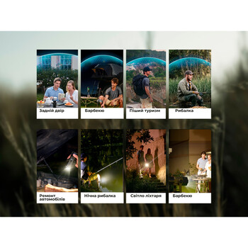 - Потужний кемпінговий ліхтар: Flextail Evo Repel надає чотири режими освітлення з яскравістю до 3000 лм. Яку атмосферу ви оберете? Тепле затишне сяйво для вечірніх посиденьок чи максимально яскравий режим для роботи чи ігор — усе в ваших руках! А п’ять різних температур світла ідеально підійдуть для будь-яких сценаріїв, від нічного читання до підсвітки намету або майданчика площею до 200 м².
