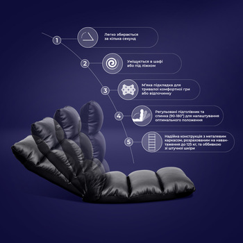 - Персональна ергономіка: Регульований підголівник і 5 позицій спинки – від зовсім лежачої до 90°! Знайдіть ідеальний кут саме для себе: для захоплених битв або затишного відпочинку.