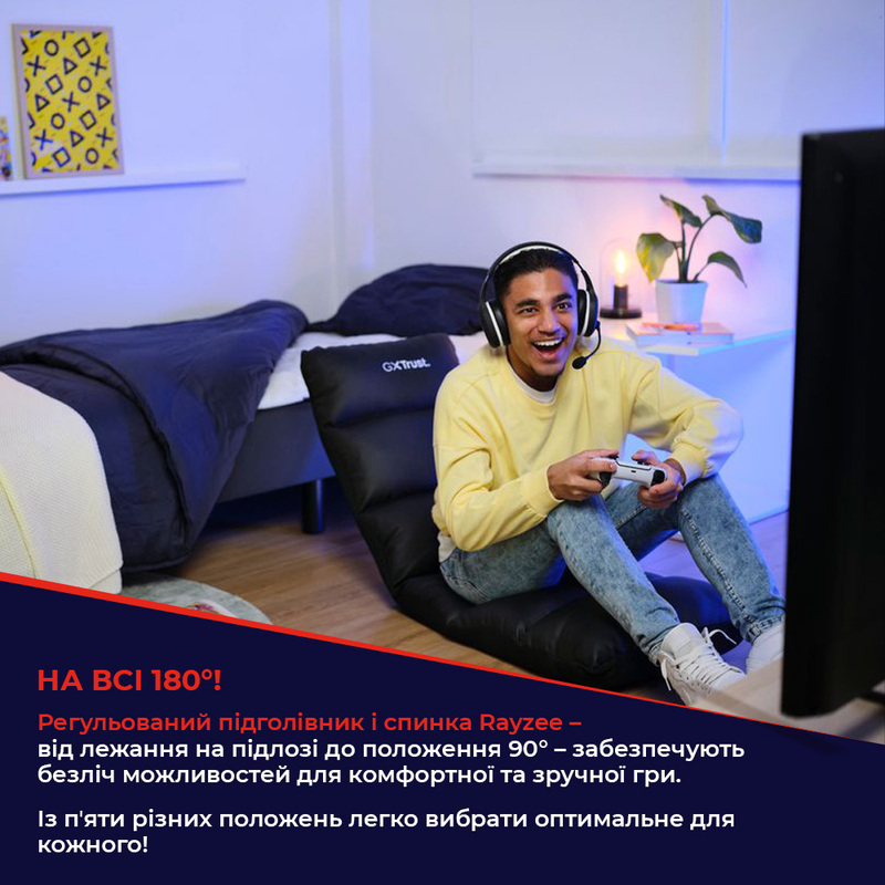 Мрієте про крісло, в якому хочеться і грати, і відпочивати годинами? Зустрічайте складане ігрове крісло Trust GXT 718 Rayzee! Уже з першого дотику відчуваєш - це справжня знахідка для фанів консолей, портативного геймінгу, і навіть для тих, хто любить влаштувати короткий відпочинок із книгою чи фільмом. Неймовірна зручність, сучасний вигляд, компактність і м'якість – цей Rayzee створений балувати вас!
