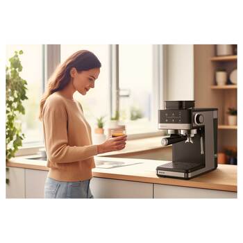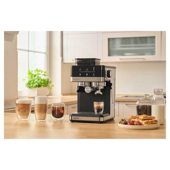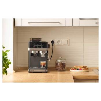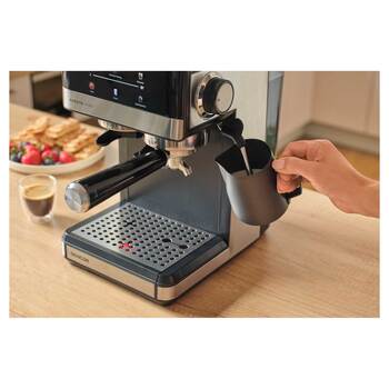 Дисплей з піктограмами простий у користуванні: ви одразу бачите, які функції доступні, і можете обрати потрібну програму одним дотиком. А поворотна насадка створює щільну та м’яку пінку для капучино чи латте. До речі, попереднє заварювання робить напій ще ароматнішим і розкриває кожну нотку смаку.