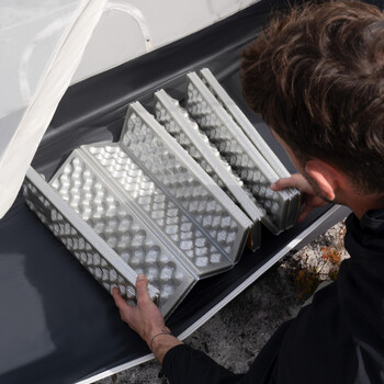 - В комплекті — дві стяжки-фіксатори, щоб килимок не розгорнувся у рюкзаку, та зручний чохол для штабелювання і транспортування.