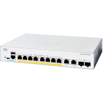 Комутатор Cisco Catalyst 1200 з 8 портами 10/100/1000 Мбіт/с та 2 комбопортами 1G, укомплектований зовнішнім блоком живлення, ідеально підходить для малих та середніх підприємств.