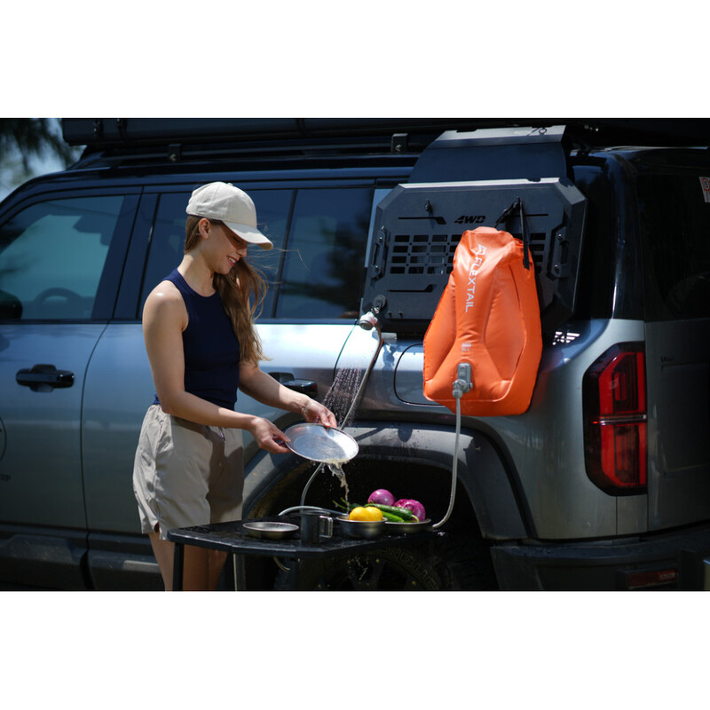 - 20-літровий герметичний бак забезпечить довгий душ або дозволить вимити посуд, овочі, взуття, байк чи навіть улюбленого песика.