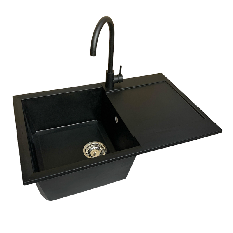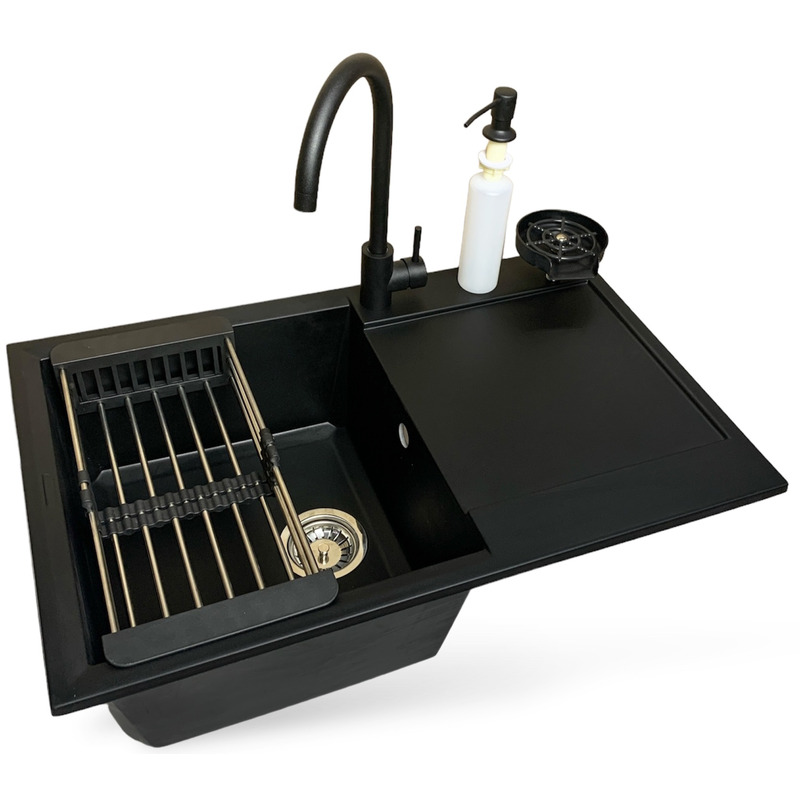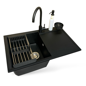 - Мийка кухонна врізна (прямокутна, розмір 780x495 мм, глибина 230 мм, чаша — 1 шт., крило для сушіння посуду, колір антрацит)