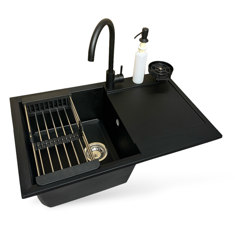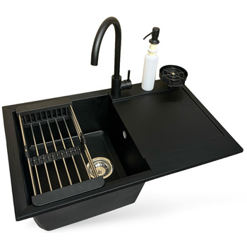 Уявіть собі: ви швидко та легко миєте навіть великі каструлі — глибока чаша впорається з об’ємом. Завдяки крилу посуд зручно залишати стікати, а додаткові аксесуари дозволяють мити фрукти чи ополіскувати келихи без зайвих рухів. Все під рукою, все продумано! Ви цінуєте свободу, коли робоча поверхня не захаращена, а кожен елемент набору підкріплює практичність і естетику вашої кухні.