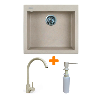 Комплектація: мийка, змішувач, дозатор, кріплення, сифон, коробка, гарантійний талон.