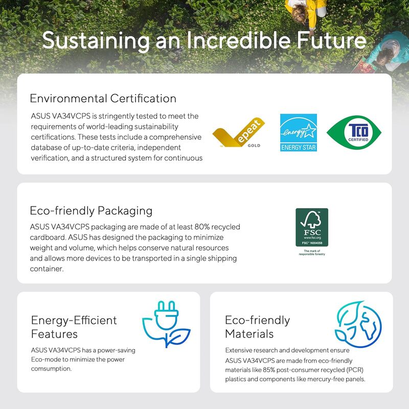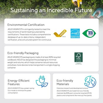 - Енергоефективність (32 Вт, <0,5 Вт у режимі сну), еко-упаковка FSC MIX, Energy Star, EPEAT Gold, TCO Certified.