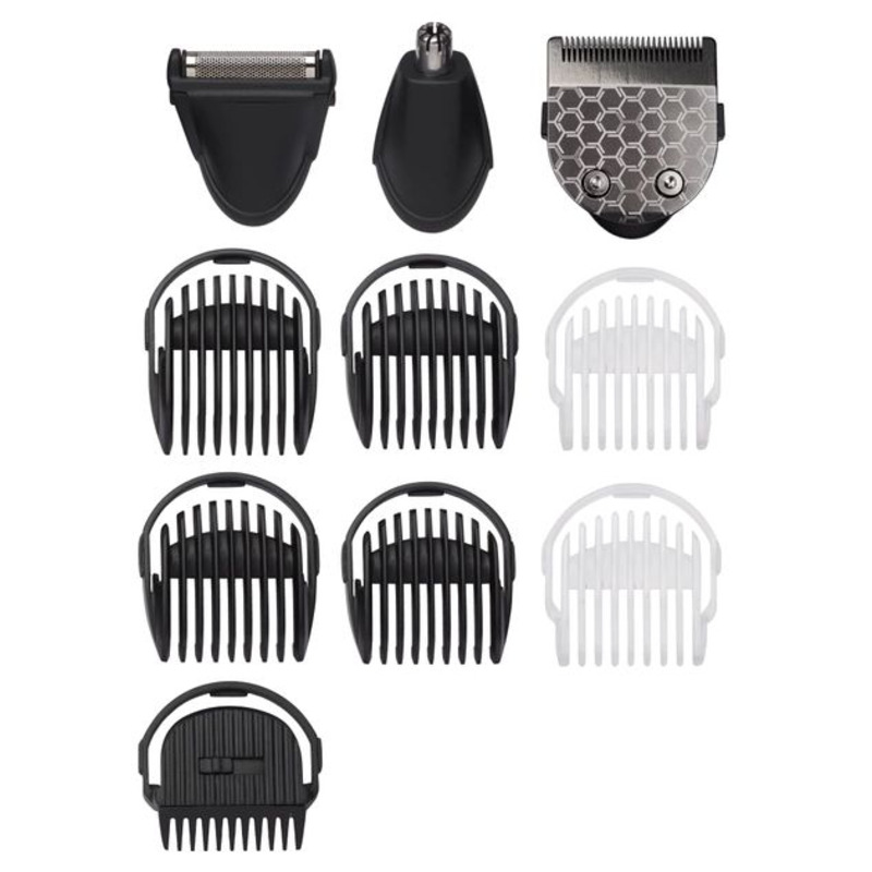 Насадка для носа і вух дозволяє дбайливо видаляти зайве волосся без подразнення шкіри. Насадка для тіла з широким лезом охоплює більшу поверхню, економлячи час. Комплект насадок для стрижки включає 7 гребеневих насадок для різних довжин, щоб експериментувати зі стрижками без візиту до перукаря.
