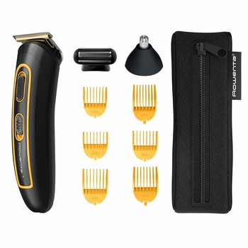 У коробці ви знайдете: сам мультитример, 8 насадок (для голови, тіла, вух/носа, різних довжин: 3, 6, 9, 12, 15, 18 мм), щіточку для чищення, олію для змащення, зарядний пристрій й практичний чохол для транспортування. Завдяки цьому набір готовий вирішити будь-яке завдання: підрівняти бороду, надати форму вусам, акуратно видалити волоски у важкодоступних місцях, подбати про тіло або створити акуратну стрижку.
