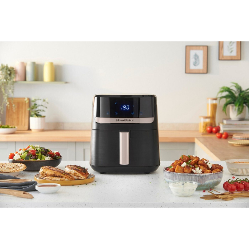 Уявіть лише: ви повертаєтеся додому після насиченого дня, і за лічені хвилини на вас уже чекає соковита курка, хрустка картопля фрі чи ароматний стейк. Ось чому мультипіч Russell Hobbs 27620-56 стане незамінною для кожної родини! Завдяки об'єму чаші на 5,5 літра ви сміливо зможете готувати справжні сімейні обіди або вечірки для друзів.