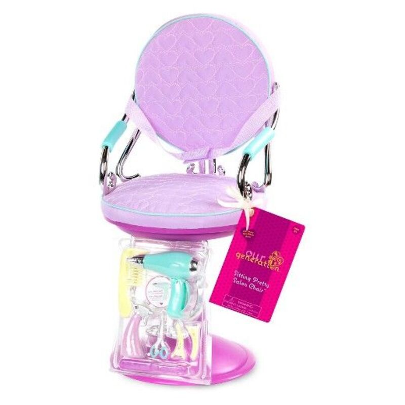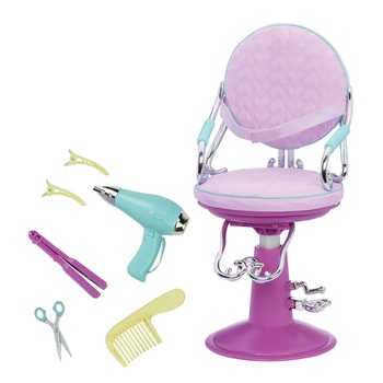 - Фіолетове крісло для салону – справжній центр косметичних пригод. Воно ідеально підходить розміру ляльок Our Generation.