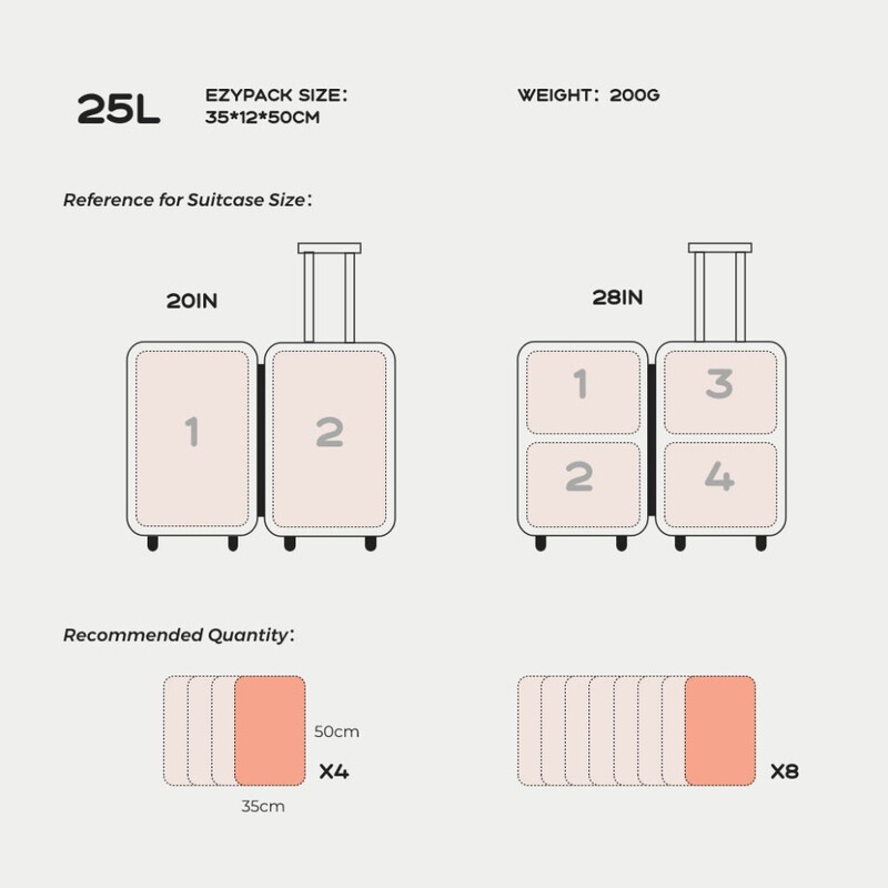 - Легке вакуумування: кілька рухів – і повітря вийшло, клапан на пакетах зберігає компресію навіть під час транспортування багажу.