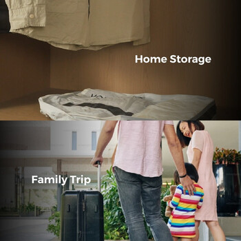Проблеми з місцем у валізі? Тепер вони в минулому! Flextail EZY PACK зменшує обʼєм одягу та текстилю до 85% вихідного розміру. Ви зможете взяти на подорож усе необхідне – навіть якщо це пухове пальто чи об’ємна ковдра. Просто запакуйте речі в міцний пакет із нейлону 210T та TPU-ламінуванням, закрийте водонепроникну блискавку, підʼєднайте компактний насос і вже за кілька секунд спостерігайте, як об’єм речей швидко зменшується.