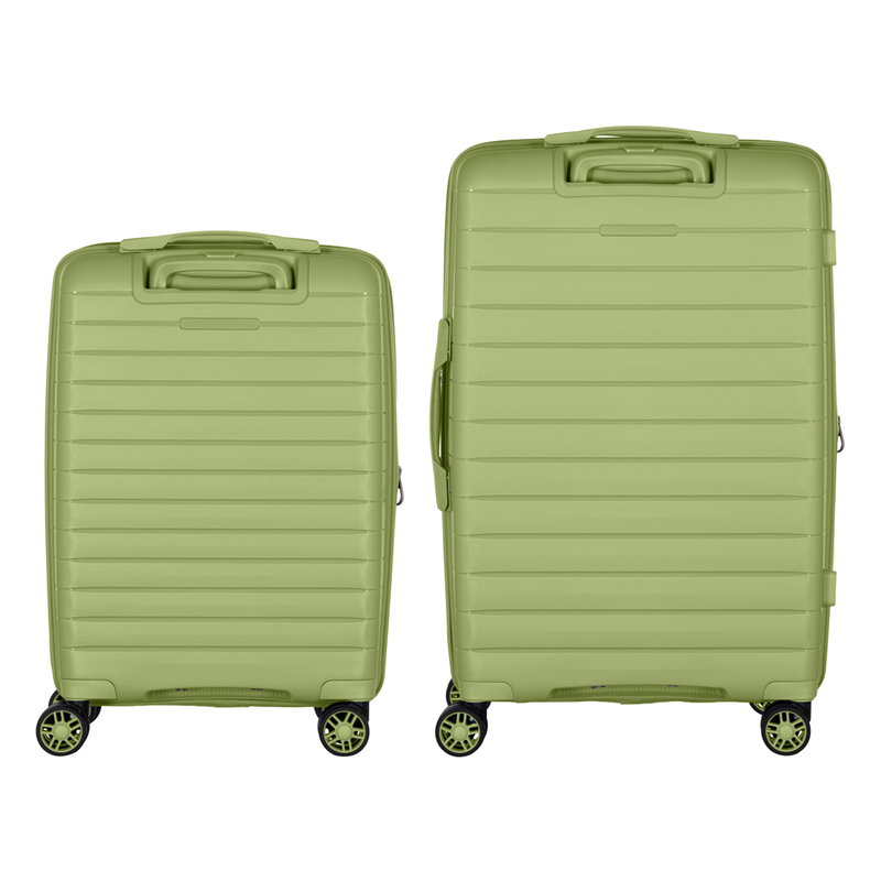 Основна перевага цих валіз — екологічний 100% поліпропілен, що забезпечує високу міцність та легкість. Матеріал відмінно протистоїть подряпинам і ударним навантаженням, тому навіть після численних перельотів ваш багаж виглядатиме як новий. А що може бути важливішим для справжнього мандрівника?