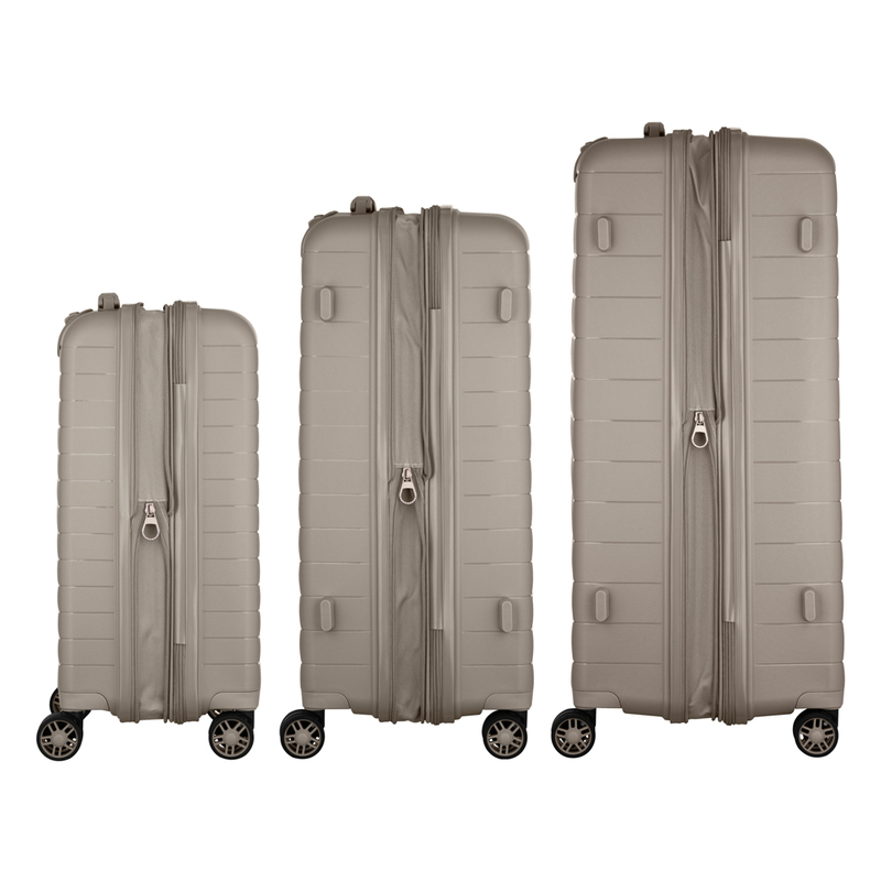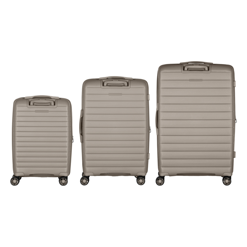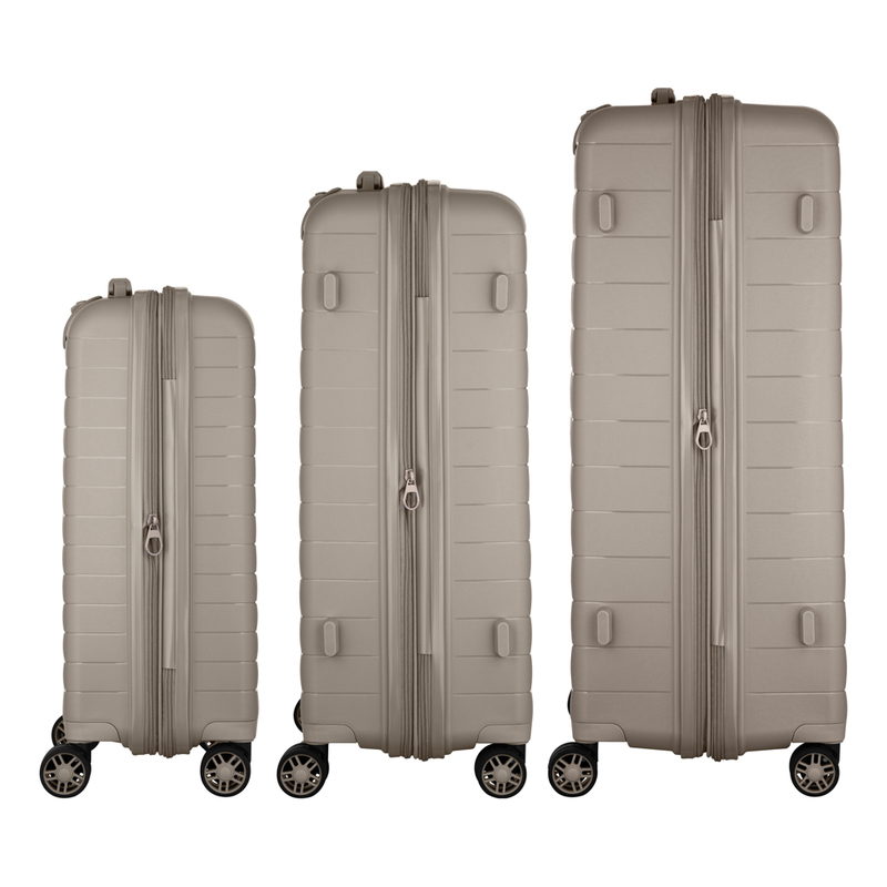 Сіро-коричневий відтінок та сучасний, стриманий дизайн виглядають надзвичайно стильно. Ви точно не залишитесь без уваги на багажній стрічці – і при цьому ваші валізи не будуть надто маркими. Продумане кольорове рішення тішитиме око навіть через багато поїздок.