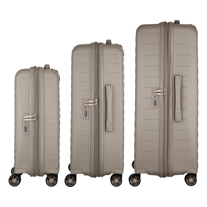 - Преміальний поліпропілен: всі валізи виготовлені з 100% міцного та екологічного поліпропілену, який забезпечує легкість і захист речей навіть у тривалих мандрівках.