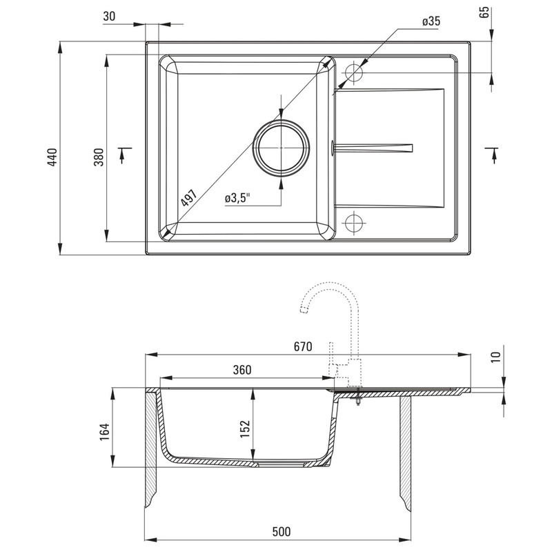 - Зовнішні розміри: 164 x 440 x 670 мм