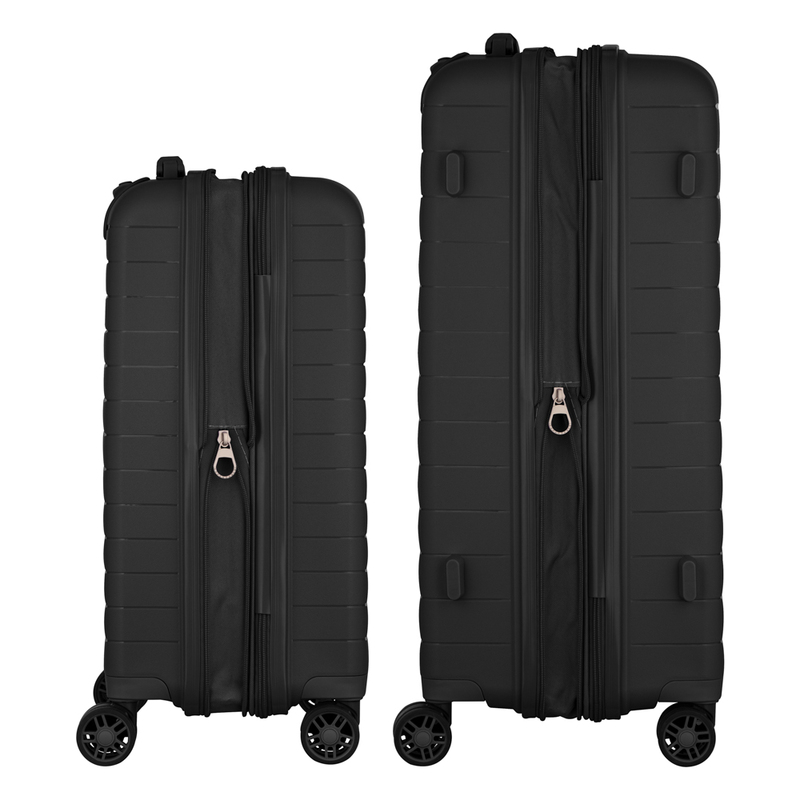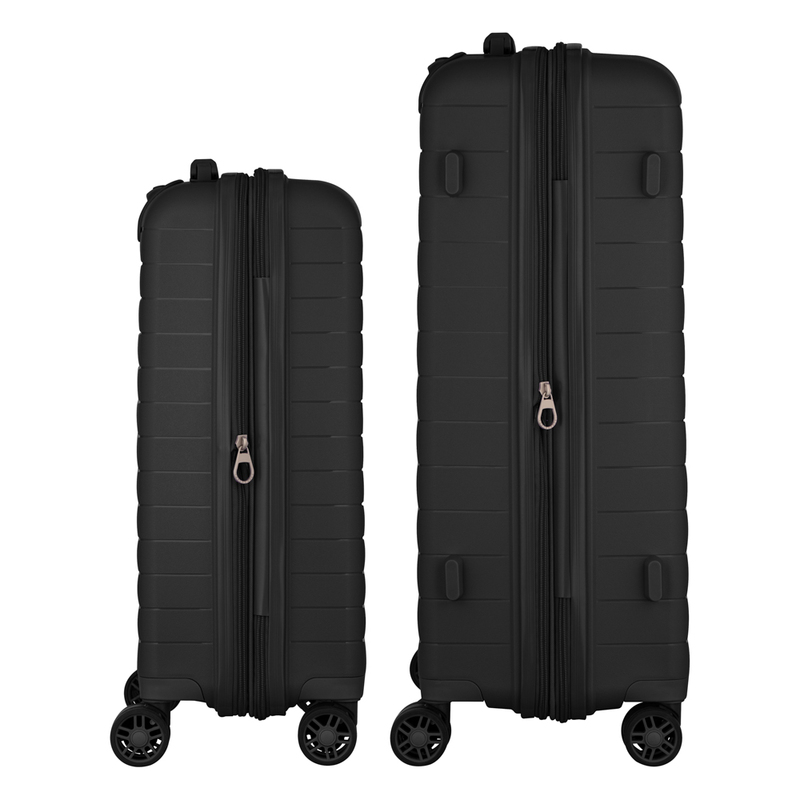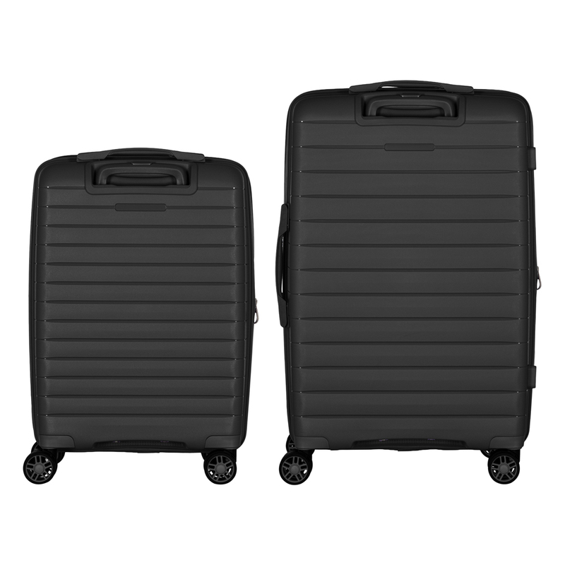 Вирушаєте у відрядження? Мала валіза ідеальна для коротких поїздок чи ручної поклажі в літаку. Беріть дві – для тривалих канікул або подорожей родиною. Більше не доведеться витрачати час на вибір – один комплект, і питання зберігання і транспортування речей вирішено! А ще й чорний колір завжди в тренді, не тільки легко впізнати на багажній стрічці, а й менше видно слідів від подорожей.