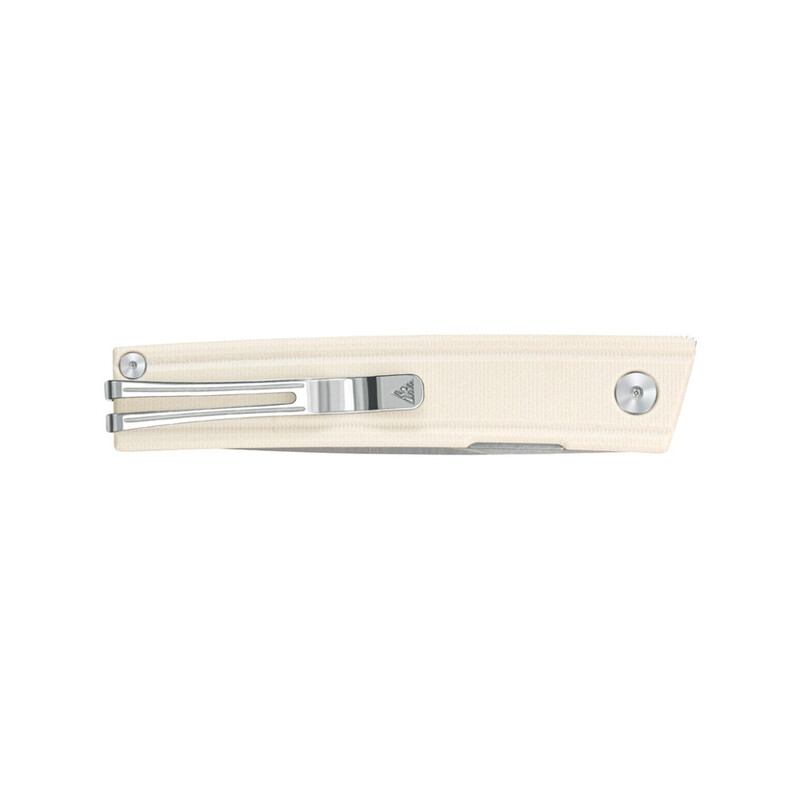SRM Gent 401LC-GT поєднує мінімалістичний дизайн із практичністю та довговічністю. Біле руків’я з G10 майже не боїться вологи, перепадів температур та подряпин, а на дотик зручне й не ковзає навіть у рукавичках. Ви відразу помітите текстуровану поверхню, завдяки якій ніж не вислизне навіть під дощем чи коли руки мокрі після риболовлі або гірського походу.