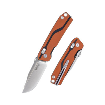 Шорстка, нековзка поверхня руківʼя забезпечує впевнене схоплення навіть мокрими руками. Накладки з G10 на сталевій основі (сталь 420) витримують контакт з водою, побутовою хімією і не лякаються температурних перепадів. З такою ручкою ви не втратите контроль у складних ситуаціях, а оранжевий акцент надає ножу характеру та легкості в пошуку серед спорядження.