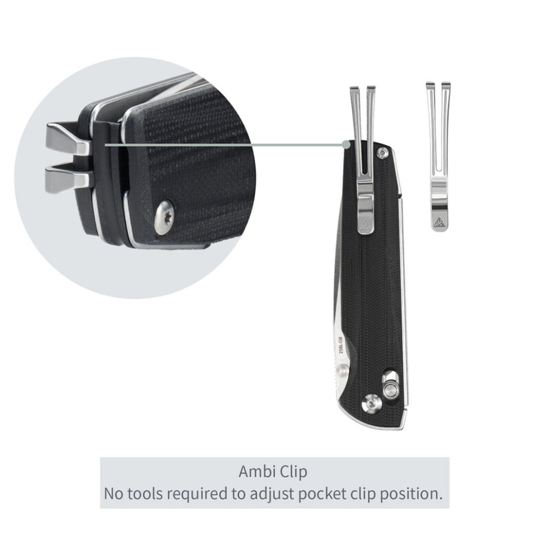 Коли тримаєте SRM Terrier в руках, відразу відчуваєте баланс між компактністю й практичністю. Дизайн мінімалістичний, але водночас кожна деталь тут на своєму місці. Сталева кліпса Tip-Up дозволяє фіксувати ніж у кишені так, що він залишиться майже непомітним оточуючим, а зручна двостороння можливість установки підлаштовується як для лівші, так і для правші.
