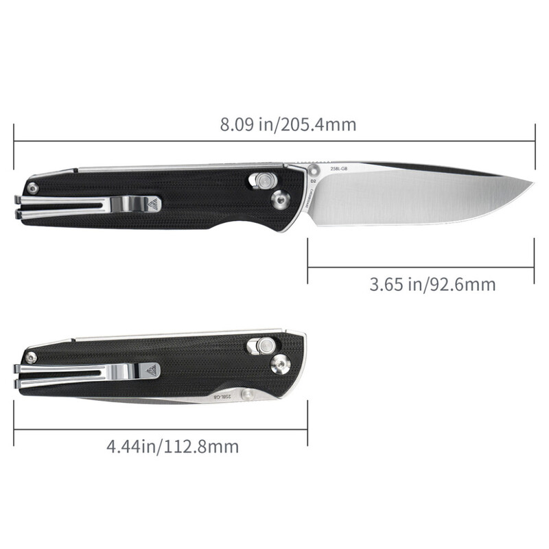 Вага ножа лише 101 г – це робить його ідеальним для EDC (Every Day Carry). Після відкриття загальна довжина складає 205,4 мм, а сам клинок – 92,6 мм. Його профіль Drop Point забезпечує легке різання та впевнене проколювання: і для відкривання пакунків, і щоб нарізати продукти під час відпочинку на природі.