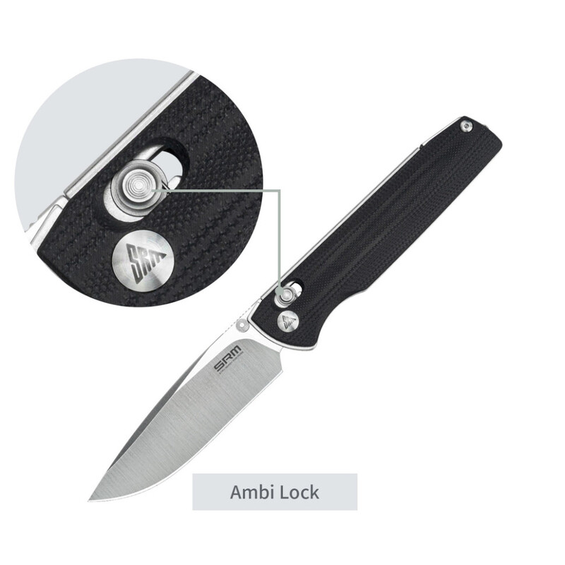 Відкривати SRM Terrier 258L-GB легко однією рукою завдяки двосторонньому шпенику. За плавність руху клинка відповідають керамічні підшипники. Вражає, що навіть після сотні циклів «відкрити-закрити» механіка зберігає ідеально легкий хід!