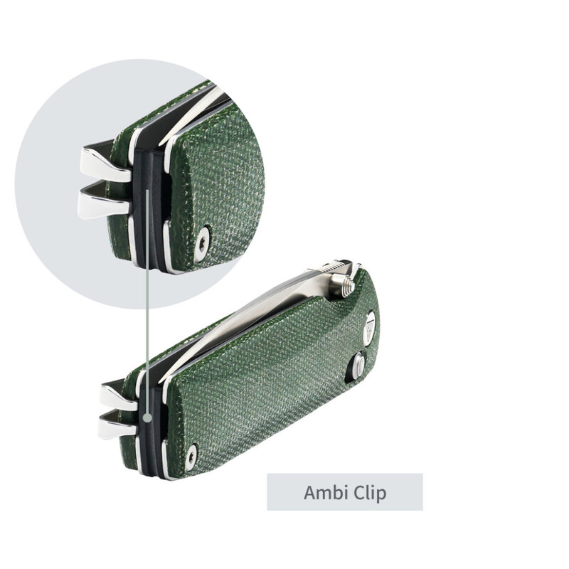 - Двопозиційна кишенькова кліпса Ambi Clip: Дозволяє перемістити кліпсу на будь-який бік руківʼя. А головне — завдяки посадці Tip-Up ніж надійно й непомітно сховається навіть у невеликій кишені.