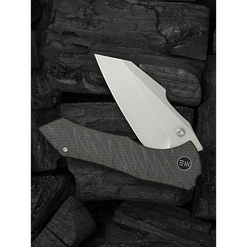 Weknife High-Fin XL WE24010-4 оснащений зручним титановим шпеником, який дозволяє відкривати ніж однією рукою. Система керамічних підшипників робить механіку відкривання напрочуд плавною. Надійний замок Frame Lock гарантує, що лезо чітко зафіксується у робочій позиції. До речі, якщо раптом знадобиться розбити скло – загострений хвіст руків’я впорається з завданням блискуче, навіть у екстреній ситуації.
