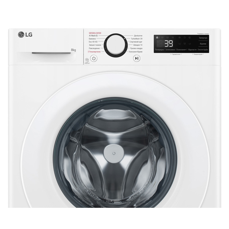 - Фронтальне завантаження до 8 кг – ідеально для сім’ї чи великої кількості прання.