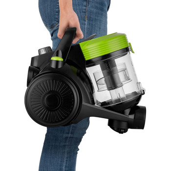 Пилосос легкий (3,7 кг), має сучасний дизайн у поєднанні чорного та зеленого кольорів. Його компактний розмір (36.5 x 26 x 29.5 см) дозволяє зручно зберігати навіть у невеликій коморі чи шафі.