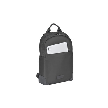 Витончена чорно-сіра палітра легко вписується як у діловий образ, так і у повсякденне міське життя. Об’єм 10 літрів — золота серединка для всіх необхідних речей, не створює зайвого навантаження на плечі. А компактні габарити 28 x 39 x 11 см дозволяють впевнено подорожувати громадським транспортом чи швидко маневрувати в аеропорту. Представляєте, як зручно – одного руху достатньо, щоб прикріпити рюкзак до ручки валізи й не розгубити нічого по шляху!