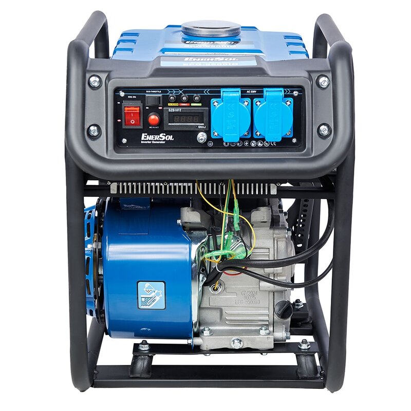 Главная особенность устройства — силовой агрегат EnerSol GP236 объёмом 236 см³ с минимальным расходом топлива (0,35 л/кВт·ч). Генератор легко запускается ручным стартером, быстро набирает обороты холостого хода (3000 об/мин), а воздушная система охлаждения гарантирует долговечность всех компонентов.