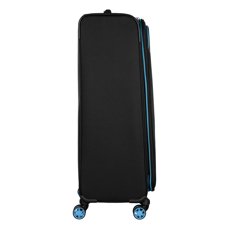 Чемодан выполнен из качественного полиэстера, устойчивого к царапинам и лёгкому очищению. Строгий черный цвет не теряет актуальности и подходит ко всему — классика вне времени. Вес — всего 2,8 кг, что позволит не переплачивать за лишний вес багажа.