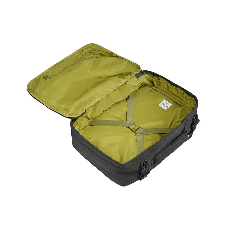 Объем рюкзака – 23 литра, этого хватает для вещей на короткие и средние поездки. Главное отделение оснащено ремнями для надежной фиксации содержимого, чтобы ничего не рассыпалось даже в толчке или в спешке пересадок. Специальное отделение для ноутбука до 16 дюймов находится ближе к спине – быстро достали на контроле, сразу убрали обратно.