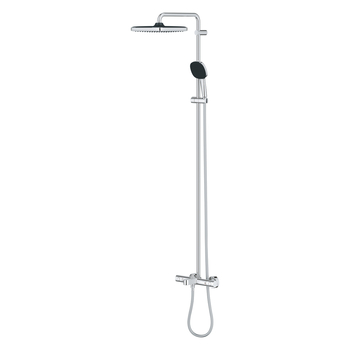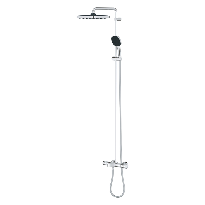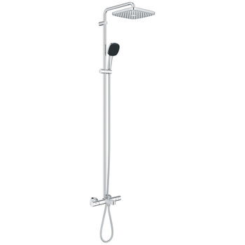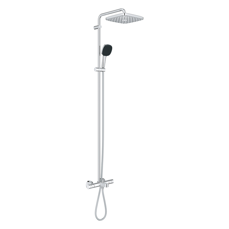 Система Grohe QuickFix Vitalio Comfort 250 прекрасно работает даже с быстрыми водонагревателями (от 18 кВт) и подходит для большинства городских квартир и загородных домов. Дополнительные опции — отдельный механический переключатель для ручного душа, простое и понятное управление режимами, легкая сборка и стильный внешний вид.