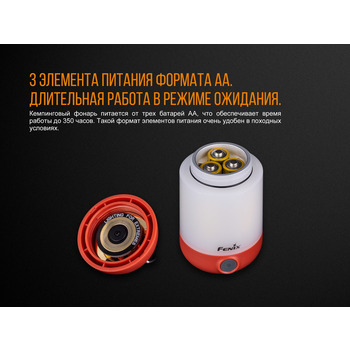 Работает от трех элементов AA (щелочные батарейки или аккумуляторы Ni-MH). Даже при отсутствии одной или двух батареек модель продолжит работу, однако режим 300 лм будет недоступен. Добавьте немного запаса — и ночные приключения станут безопаснее!