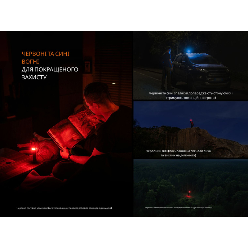 Мгновенно переключайтесь между повседневным светом, аварийной сигнализацией или режимом для самообороны. Нужно быстро подать знак? Есть режим SOS и красно-синие вспышки. Любите рыбалку или прогулки ночью — просто выберите подходящий оттенок.