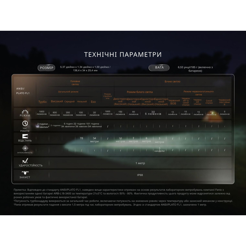 Основой служит современный диод Luminus SST40 Gen2 и две боковые светодиодные полосы COB. Максимальный световой поток — 1800 лм, дальность освещения — до 337 м. Теперь вы не только видите, но и замечаете детали в любой темноте!
