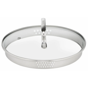 - Крышка: прозрачное стекло с дополнительными металлическими элементами и отверстиями для слива жидкости, а также выхода пара.