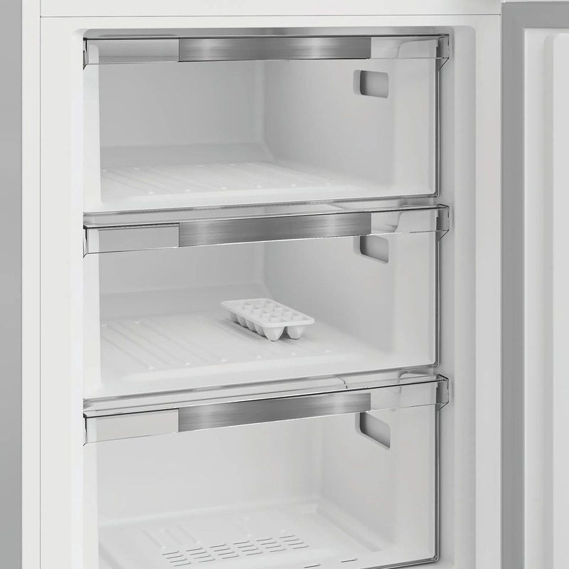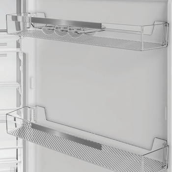 Высота 202,5 см, ширина 59,5 см, глубина 67 см — модель удобно размещается даже в стандартной кухне. Скрытые вертикальные ручки делают внешний вид аккуратным, а две двери позволяют без лишних усилий добраться до любого отделения. Белый корпус всегда будет выигрышно смотреться в любом интерьере!