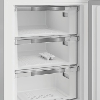 Общий объем модели — 386 литров. Холодильное отделение на 266 литров легко помещает овощи, фрукты, напитки, готовые блюда и многое другое. Морозильная камера на 120 литров позволяет заморозить до 6 кг продуктов в сутки и поддерживать холод до 33 часов даже при отключении электроэнергии — спокойствие без лишних тревог!
