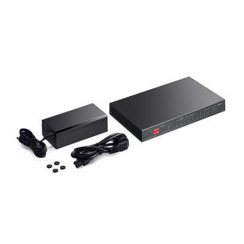 - 10 гигабитных портов: 9 x RJ45 10/100/1000 Мбит/с + 1 комбинированный SFP/RJ45.