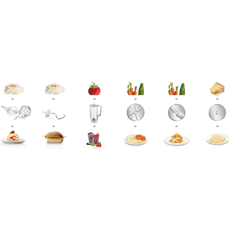Кухонная машина Bosch MUM58720 оснащена всем необходимым для экспериментов на кухне: