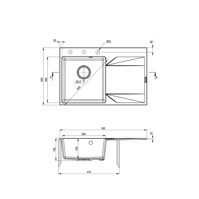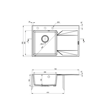 - Размеры: 760х500х195 мм (длина x ширина x высота)